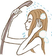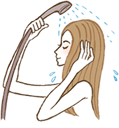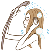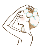 4すすぎ髪や頭皮にシャンプーの成分が残るとかゆみや炎症の原因となるため洗い終わったら最低3分を目安に十分に洗い流します。