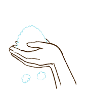 2泡立てシャンプーは500円玉程度の量を手に取り泡をたくさんたてましょう。